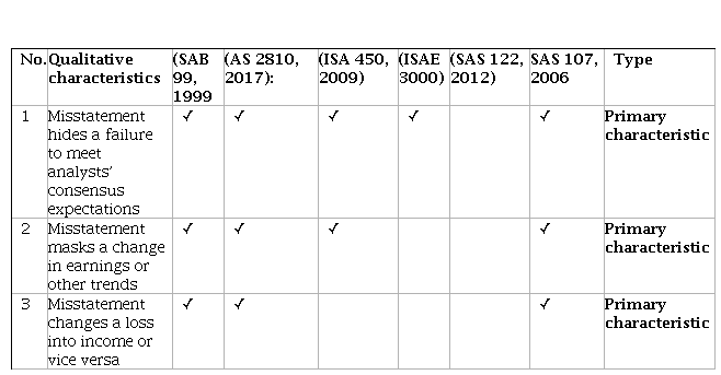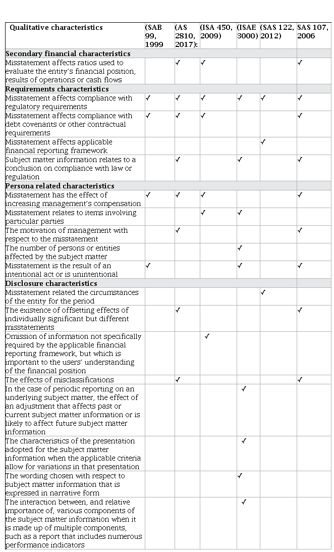 International Auditing and Assurance Standards Board released ISA 450 “Evaluation of Misstatements Identified During the Audit” – 11 examples of qualitative characteristics (ISA 450, 2009)