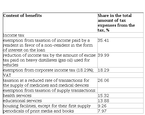 The separation of these groups of “structural benefits”, in our opinion, greatly facilitates the identification of the basic structure of the tax system (tax), and hence tax costs and may be the first step towards developing a single conceptual model of the basic tax structure. Given the fact that “structural benefits” should be the lion’s share of the basic structure of the tax, different approaches to determining its other elements cannot significantly affect the assessment of total tax expenditures.