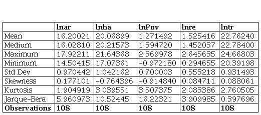 The presentation of empirical results is divided into five sections namely: descriptive statistics, panel unit root tests, long-run, short-run and cross dependency test results. The subsequent section discusses the descriptive statistics.