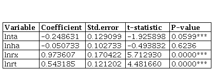This section discusses the long-run relationship between poverty alleviation and tourism receipts in the BRICS countries. The results of the long-run analysis are shown in table 4 and equation 3 below using the AIC (2,2,2,2).