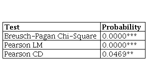 The cross-dependency test was employed to assess if the variables were correlated and have produced spurious results, as illustrated in table 5. The results report that all three tests confirm that the model used is free from serial correlation and did not produce spurious results. This was shown by the p-values that are less than 10 percent. We can safely conclude that the model was stable.