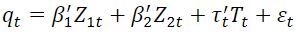 (1)The above equation provides a theoretical representation of the variables affecting the real exchange rate qt such that Z1 is a vector of economic fundamentals that are expected to have persistent long-run effect, Z2 is a vector of economic fundamentals that can have medium-run effects, and T is a vector that can have short-run transitory effects. β1, β2 and τ are vectors of reduced-form coefficients. εt is random disturbance term.