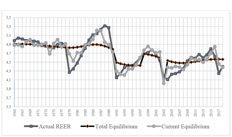 An economy’s real exchange rate is a critical economic indicator since it links the domestic economy with the rest of the world. Real exchange rate plays a pivotal role in impacting a country’s economic growth and competitiveness in the international markets. Consequently, any country should seek the right level of its exchange rate – that is, the equilibrium exchange rate. Deviations of the actual exchange rate from the equilibrium level can signal crucial information to policymakers, central banks and financial institutions. Particularly, any misalignment may indicate future probabilities of currency crises that can lead to realignments of the exchange rate at the end (Holtemöller & Mallick, 2013; Giannellis & Koukouritakis, 2013). Currency crises can be triggered by a misaligned (e. g., overvalued) exchange rate, which may lead to speculations by foreign investors who start an attack on the domestic currency. Furthermore, extended phases of overvaluation and undervaluation of the local currency can have vast social effects in the economy.