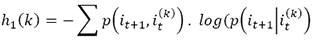 (3)The average number of bits needed to encode the observation in t + 1 if the previous k values are known is given by: