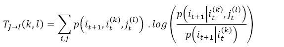 (5)where TJ→I measures the flow of information from one process J to another process I. (TI→J measures the flow of information from I to J and can be derived analogously).