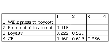 As demonstrated in Table 12, all hypotheses were supported at the .01 significance level. Preferential treatment (β = 0.537) and customer loyalty (β = 0.393) have significant and positive impacts on CE. Therefore, H1 and H2 were supported. CE (β = 0.523) has a significant and positive impact on willingness to boycott. Therefore, H3 was supported.