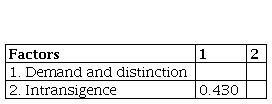 To allow for high-quality EFA decisions, the authors employed principal axis factoring (PAF) with the oblique rotation (Promax) technique (Conway & Huffcutt, 2003), using IBM SPSS 24 to produce a simple factor structure. The final EFA, with ten items (one item with a factor loading below 0.50 was eliminated), produced a two-factor solution [eigenvalues > 1.0, per Kaiser (1960); Kaiser-Meyer-Olkin Measure of Sampling Adequacy, KMO = .815, which is greater than the recommended value (.50); Bartlett’s test of sphericity is significant, . = .000; see Tabachnick & Fidell, 2007]. The two extracted factors explained 50.78% of the variance.