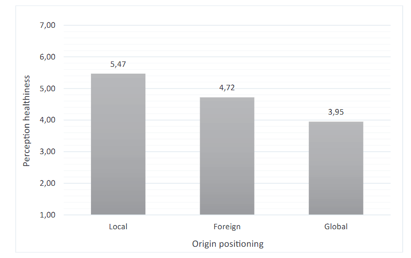 From a theoretical perspective, this research contributes to international marketing and global branding literature and helps to better understand consumers’ evaluations and intentions in the global food products category. Drawing from arguments on cue utilization theory (Jacoby et al., 1971) and the categorization process of social cognition (Fiske, 2000), global food products are evaluated as less healthy because they are associated with an out-group category in consumers’ consciousness. In many cases, the global origin is associated with many different countries, but at the same time, there is a lack of information about specific countries or origins of the product. Consumers tend to avoid an unfamiliar origin (Peng et al., 2013). Moreover, previous research argues that the superordinate origin category fails in competition with local origin positioning (Diamantopoulos et al., 2017). Thus, this could be one of the reasons why a global origin is related to an even bigger avoidance evaluation than a foreign origin, which also belongs to the out-group category (Gineikiene et al., 2016).
