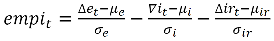 Eichengreen et al. (1996) argued theoretically that the EMP index should be derived from a structural exchange rate determination model. However, such models have weak explanatory power at short- and medium-term horizons. Hence, in the absence of an empirically valid macroeconomic model, the exchange rate market pressure can be analyzed with an ad hoc approach.