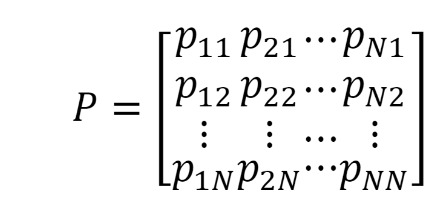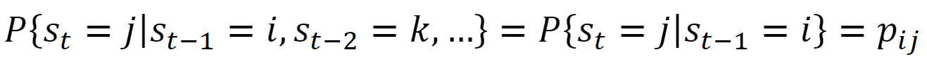 (3)Here, the transition probabilities of state i followed by state j are represented by pij. The transition matrix P, for NxN dimensions is defined as follows under the assumption of pi1 + pi2 + ... piN =1 (Hamilton, 1994):