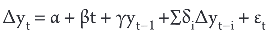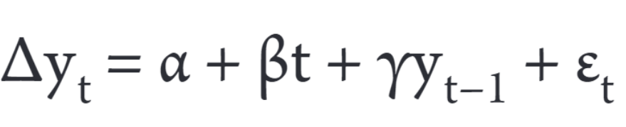 (2)where, y. is either the market return or the volume, α, β and γ are model parameters, and ε. is a white noise error term. The same null hypothesis of ADF test applies in the PP test, where γ = 0 indicates that the data series is non-stationary.