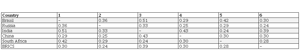 The composition of a country’s trade and its volume is time variant. Various factors drive this change, and the theory of comparative advantage explains a great deal about global trade patterns.. We, therefore, constructed an index of trade integration patterns using the information on the comparative advantage of various products10. By constructing an index of trade integration patterns, our objective was to quantify India’s trade integration pattern (similarity/dissimilarity) with other BRICS members. More precisely, it is based on the notion that the greater the number of commodities where trading partners have a comparative advantage in common, the more similar their trading patterns are. This index is expected to lie between 0 and 1. The closer the value is to 0, the more dissimilar the trading pattern is, and the more inter-industry trade occurs. Conversely, the closer the value is to 1, the more similar the trading pattern is, and intra-industry trade prevails. Our index is specified as follows: