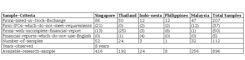 The sample in this study uses companies engaged in the technology sector listed in the stock exchange of ASEAN-5 from 2011 to 2018, as seen in Table 1. These nations are Singapore (SGX), Thailand (SET), Indonesia (IDX), Philippines (PSE), and Malaysia (BM). The technology sector was chosen because currently ASEAN countries tend to move in the electronics sector as the main source of export and import activities. The type of data used is qualitative and quantitative data.