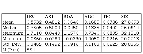 Variable agency cost has no influence on the firm leverage because of the significance level of 0.4845 with the coefficient of -0.1472. This result means that the agency cost does not affect firm leverage. Theoretically, the increase of agency cost, which means increasing the control of shareholders to management, will decrease tendency to make more debt. The moral hazard of management related to debt risk will decrease. However, this result does not support the hypothesis.