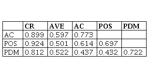 Table 5 shows that the composite reliability (CR) of all constructs was greater than 0.7, and the average variance extracted (AVE) of all constructors was greater than 0.5 (Hair et al., 2010). Furthermore, the AVE estimates of the constructs are greater than the squared correlations. These results show that the measurement model is valid and reliable.