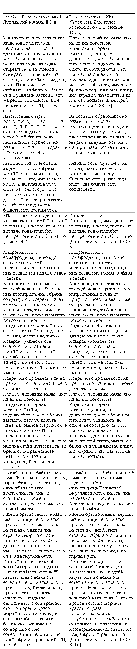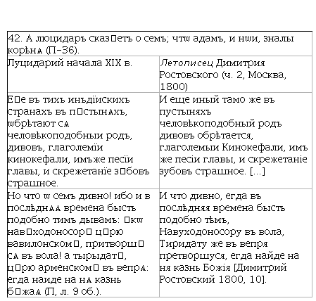 Итак, в ответах на четыре вопроса переводного Луцидария (№ 20, 40, 42, 64) присутствуют интерполяции, текст которых заимствован из трех печатных источников: Ключа разумения Иоанникия Галятовского (Киев, 1659 либо Львов, 1663 или 1665), Зерцала богословия Кирилла Транк- виллиона-Ставровецкого (Почаев, 1618 либо Унев, 1692)4 и Летописца Димитрия Ростовского (Москва, 1799–1800).