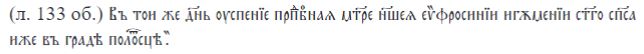 Текст жития Евфросинии Полоцкой по рукописи ЛИМ 108, 23 мая, л. 133 об.–135 об.