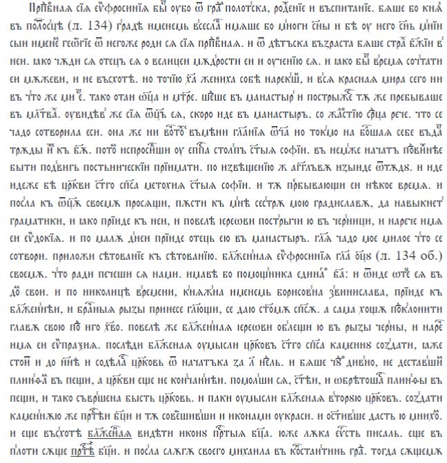 Ниже приведен текст жития Евфросинии Полоцкой по списку ЛИМ 108 с сохранением графических и орфографических особенностей оригинала, что позволит использовать данную публикацию как в литерату- роведческих, так и в лингвистических исследованиях.