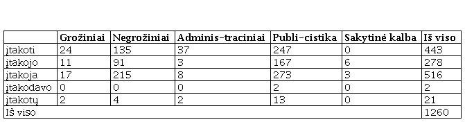 Due to all the aforesaid circumstances, the verb įtakoti is a systemic derivative/loan translation, which occupies a reasonable place in one or another derivation sub-system in the Lithuanian language as well as a fact of live speech, which does not contradict the systemic structure of language.