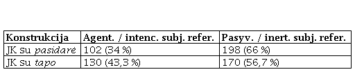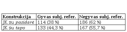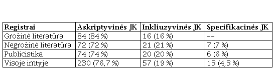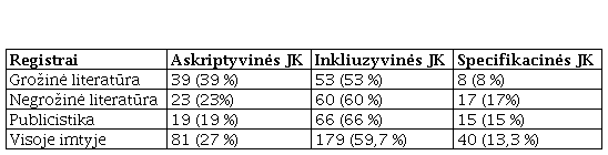 Iš visos tirtos 300 JK su pasidarė imties 230 (76,7 proc.) konstrukcijų yra askriptyvinio tipo.