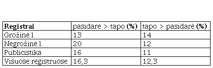 Galimą pasidarė > tapo ir tapo > pasidarė mastą tirtose DLKT įvairių registrų imtyse atspindintys skaičiai patogumo dėlei toliau pateikiami 6 lentelėje: