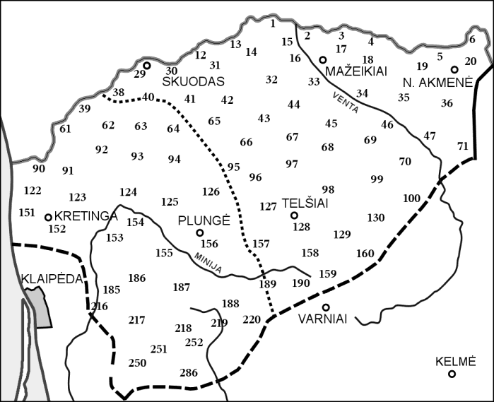 Mikulėnienė Danguolė, Meiliūnaitė Violeta et al. 2014, XXI a. pradžios lietuvių tarmės: geolingvistinis ir sociolingvistinis tyrimas (žemėlapiai ir jų komentarai), Vinius: Briedis, 49-62.