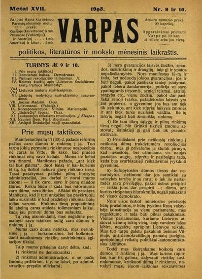 Vienu žodžiu, kur musų programas, kurs mus vienytų ir stiprintų? <...> Lai bun tik aiški plačiai apdirbta programa, tai nebeturėsime tiek romantikų daugiaus kalbančių negu dirbančių.