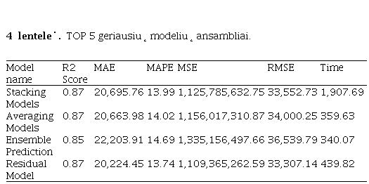 Šių ansamblių rezultatai yra pateikiami 4 lentelėje.