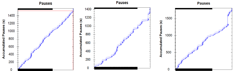 Pateiktose trijų skirtingų vertėjų pauzių sankaupų nuotraukose galima pastebėti, kad dinamika labai skirtinga. Dėl šios priežasties sudėtinga apibendrinti, kur vertėjai bendrai susidūrė su kognityviniais sunkumais, nes tai priklauso nuo kiekvieno dalyvio vertimo stiliaus.