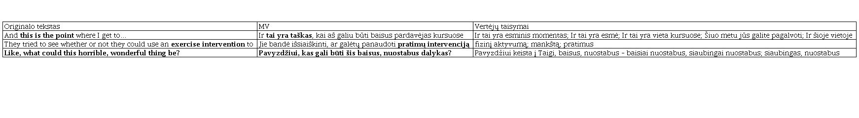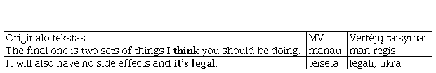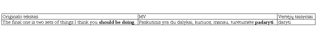 Respondentai įžvelgė sistemos privalumą, kad tekstas jau surinktas ir reikia tik atlikti taisymus. Kaip sistemos trūkumai įvardyti pažodinis vertimas ir netiksli žodžių seka.