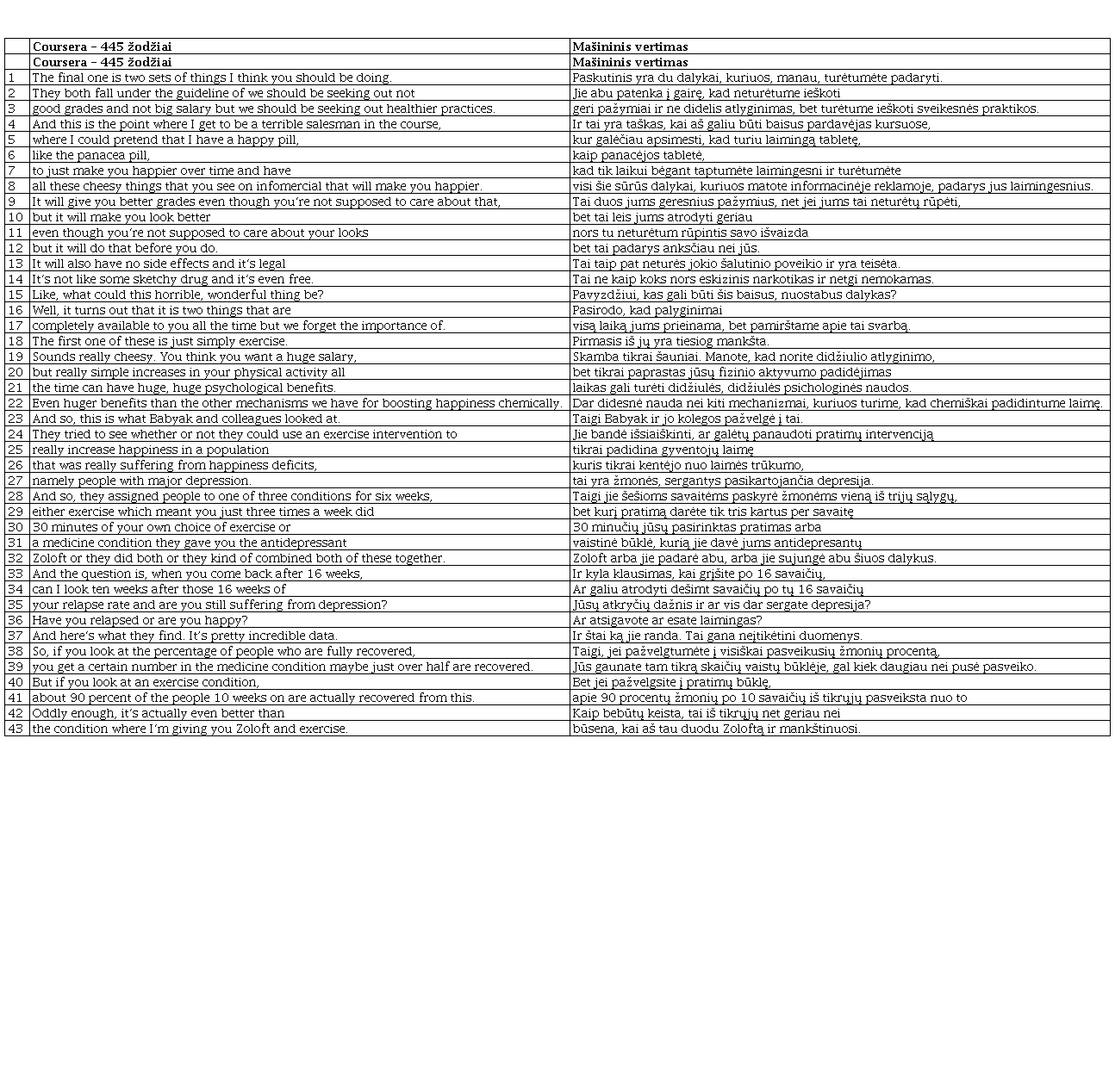 Siekiant nustatyti MV sistema „Smartling“ išversto platformos „Coursera“ turinio postredagavimo ypatumus buvo parinkta „Smartling“ išversta ištrauka iš vieno populiariausių platformos „Coursera“ kursų – „Gerovės mokslas“ (angl. The Science of Well-Being4). Šį kursą dėsto Jeilio universiteto psichologijos profesorė Laurie R. Santos. Jo reitingas 5 žvaigždučių sistemoje vertinamas 4,9 balo pagal 370 tūkst. įvertinimų. Į šiuos kursus užsirašė 3,8 mln. žmonių. Ištraukos ilgis – 445 žodžiai (43 subtitrų eilutės). Šios ištraukos ilgis leido dalyviams susidaryti įspūdį apie paskaitos turinį, kontekstą ir dėstytojos kalbėjimo stilių.