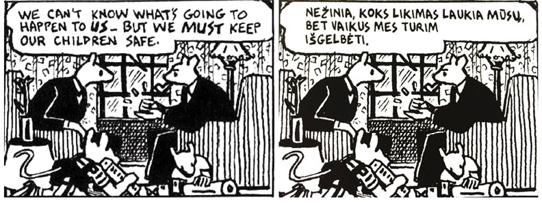 Abstract: This article contributes to the multimodal investigation of comics translation, a highly semiotic activity. The author discusses the visual representation of the text as an image through a case study of the Lithuanian translation of Art Spiegelman’s graphic novel MAUS (translated into Lithuanian by Juškienė and Lempert, 2012). While viewing multimodality as a translation tool and a challenging area, he claims that the visual representation of the text is an integral part of the original multimodal event, whereby the meaning is conveyed through an intrinsic relationship between verbal and non-verbal elements, and that any distortion of those would result in alterations or losses in meaning. The results demonstrated that indeed even the smallest alterations of the visual representation of the text produced shifts in meaning; most of those shifts were pragmatic ambiguities, however, in certain instances there was a loss of semantic emphasis or narrative production. Comics translators and publishers are thus urged to fully comprehend the very dynamic and complex nature of multimodal texts and make every effort to ensure that translation would not result in any multimodal disruptions, if such preservation is technologically available.