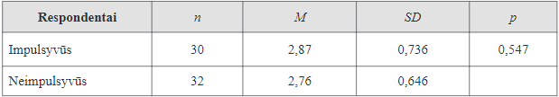 Nesikišimas. Šis faktorius rodo respondento nuomonę apie tai, kiek jis pats yra įsitraukęs, pasirengęs padėti ar stengtųsi sulaikyti savižudybei pasiryžusį žmogų (Klimaitė ir Skruibis, 2010). Nustatyta, kad valgymo sutrikimais sergančių ir šiais sutrikimais nesergančių asmenų nesikišimo faktorius reikšmingai nesiskyrė (p = 0, 079). Visi tyrimo dalyviai išreiškė santūrią poziciją dėl aktyvių savižudybės intervencijos veiksmų (žr. 2 lentelę). Galima svarstyti, kad tam galėjo turėti įtakos tyrimo dalyvių gana jaunas amžius (vidutinis amžius 25 metai), kai, tikėtina, labiau linkstama koncentruotis į savo poreikius, taip pat labiau vertinamas asmens autonomiškumas. Svarbu ir tai, kad lyginamosios grupės kai kurie dalyviai galėjo patekti į valgymo sutrikimų ar kitų psichikos sutrikimų rizikos grupę (pagal papildomos anketos duomenis), kas galbūt prisidėjo ir prie panašių šių nuostatų ypatybių.