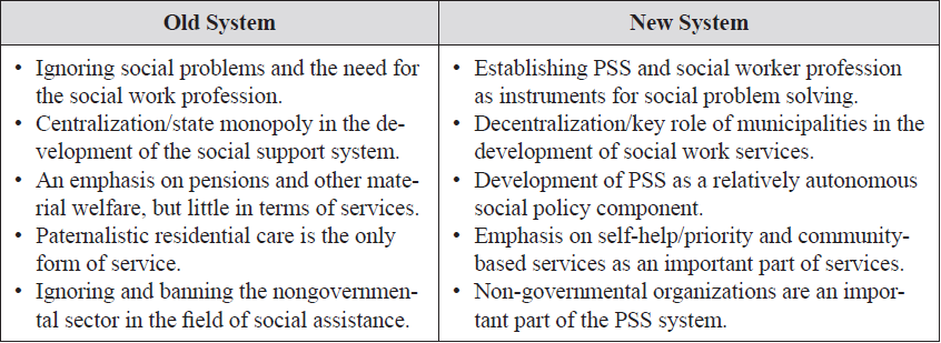 Although the PSS, as a subsystem of welfare, has only developed in Lithuania over the last three decades since the reestablishment of independence in 1990, we can observe radical changes in this sector. The first steps of Soviet centralized residential care service reform after reestablishing independence occurred in an extremely hostile environment. It was necessary to reverse the old system, which was rooted in a paternalistic social service culture, into a community-based service model taken from the democratic welfare states. Meanwhile, Lithuania, after the restoration of Independence began to implement market-based restructuring of the economy, but the first model of social service organization was based on the ideology of traditional welfare state. The first period after the collapse of Soviet regime (1990–1996) can be described as breaking away from the Soviet state residential care model and creating various community services and the professionalization of the sector. The following decade from 1996 can be described as the time of creating the foundation of a new framework for PSS systems. At that time, responsibility for the organization of services was divided between the state and municipal authorities, and a system was set up for new community-based services for various customer groups, relying on the welfare state principle “services according to need.” Meanwhile, after 2006, the established legal framework already exaggerated the emphasis on “services according to needs” towards “service according to resources,” creating the foundation for the development of a mixed economy of care and market relationships. Compare to the Western countries, Lithuania shifted to the market economy much more rapidly. Fairly rapid marketization in the sector can be associated as with a political and public support for liberal policy in general in Lithuania as with less power and critical approach of professionals to the development of the sector.