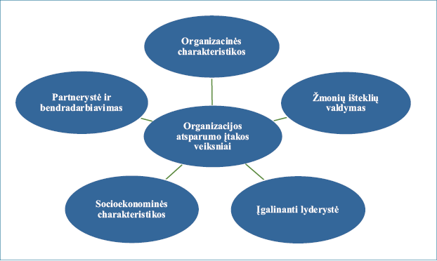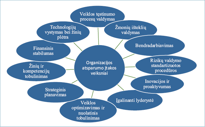 Remiantis teorine analize nustatytos organizacijų atsparumo veiksnių sritys vaizduojamos 1 paveiksle.
