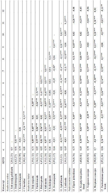 Kaip ir galima numatyti pagal Žiedinį modelį, SISQ skalės ir subskalės tarpusavyje siejosi sistemingu būdu. Bendravimo būdai stipriausiai koreliavo su šalia esančiais Žie- diniame modelyje būdais, koreliacijos silpnėjo ir perėjo į neigiamas judant žiede ratu. Silpniau siejosi tarpusavyje gretimos būdų poros, esančios Žiediniame modelyje ties po- reikių patenkinimo ir poreikių blokavimo riba – aiškinantis ir reikalaujantis bei laukiantis ir dalyvaujantis. Tokia tendencija išryškėjo kituose tyrimuose (Aelterman et al., 2019; Vermote et al., 2020; Escriva-Boulley et al., 2021) ir rodo, kad poreikius tenkinantys ir poreikius blokuojantys būdai greičiausiai labiau skiriasi tarpusavyje (rečiau taikomi kartu) nei kiti šalia vienas kito žiede esantys būdai.