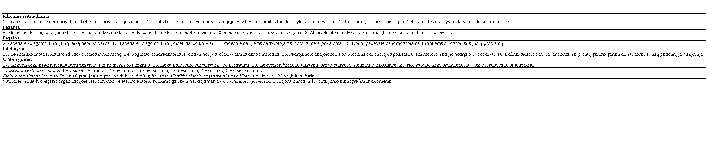 Pilietiško elgesio organizacijoje patikslinto klausimyno psichometriniai rodikliai