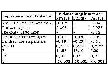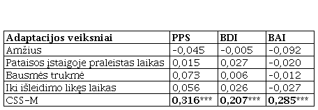 Siekiant įvertinti, kokie veiksniai geriausiai prognozuoja adaptaciją pataisos įstaigoje, naudota regresinė analizė. Į kiekvieną regresijos lygtį buvo įtraukiami tik tie veiksniai, kurie reikšmingai siejosi su atskiru adaptacijos rodikliu. Rezultatai pateikti 3-ioje lentelėje.