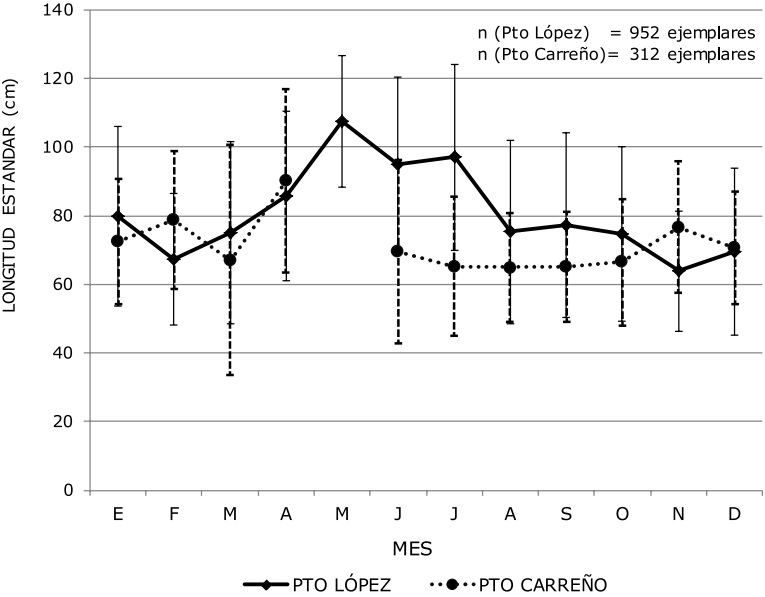 Given the proximity of Puerto Lopez, Cabuyaro, Puerto Guadeloupe and Puerto Gaitán, length data collected in these collection centers were grouped into just one report to facilitate analysis and are herein designated Upper Meta River.