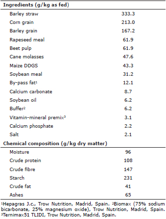 The chemical composition and concentrate and mixed ration was analyzed by Master Lab España Analytical Services (Tres Cantos, Madrid, Spain).