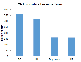 To compare the two farms, animal groups of similar characteristics in terms of production were chosen, and that meant averaging P1 and P2 counts for Lucerna and compare this average with the group average of La Isabela (Figure 2). This analysis showed statistical difference in the average counts for both farms (p=0.043).