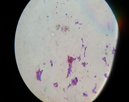 Of this material was prepared as blades for staining by Gram stain and identification of agents, observing, during the procedure, the practice of sterilization.