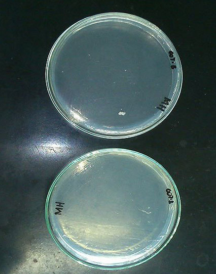 Of the borderline 60% e 70% were prepared Petri plates containing Agar Müeller Hinton for each concentration for against proof and not identified growth of colonies in both concentrations (Table 1, Figure 5).
