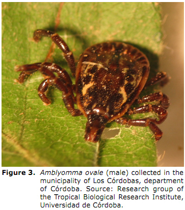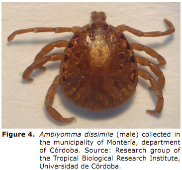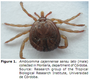 In Colombia, we know about several species of the complex Amblyomma cajennense such as: Amblyomma mixtum and Amblyomma patinoi (Figure 1) In a large part of the Colombian territory (5,13).