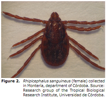 Another vector involved in the transmission of rickettsia commonly found in Colombia is Rhipicephalus sanguineus, or brown dog tick (Figure 2).