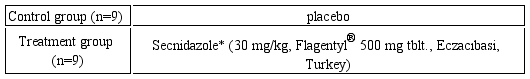 In a prior multidiciplinary research at agricultural and veterinary fields the efficacy of secnidazol treatment on milk production in dairy ewes infected with G. duodenalis was assessed. Single secnidazole at a dose of 10 mg/kg-30 mg/kg, revealed that there was a significant reduction in cyst excretion (22). Another study determined secnidazole administration at a single dose of 10 mg/kg, orally in lambs naturally infected with G. duodenalis. Twelve weeks of age weaned lambs were selected and randomly assigned into two groups based on placebo (n=7 untreated control group) or treatment (n=10 lambs treated with a single secnidazole; dosage 10 mg/kg). During the latter study a high (99.98%) reduction in cyst excretion in the secnidazol treatment group compared to the control group at day 10, revealed a significant (p<0.001) reduction in cyst excretion (23). Another study reported the efficacy of three treatments measured against Balantidium coli, which is another parasite, in cattle. According to the latter authors obtained therapeutic efficacy rates as 37.5, 62.5, and 87.5% for metronidazole, oxytetracycline, and secnidazole, making secnidazole the most effective option (28).
