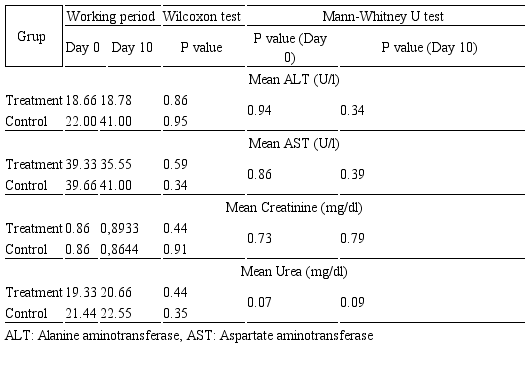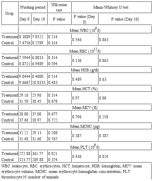 Haematological and serum biochemical analysis. Among aformentioned parameters there was no intragroup or intergroup differences, as detected by mean values and statistical analysis, which were shown in tables 2 and 3.