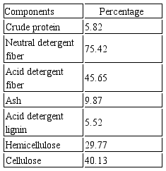 In vitro gas production. Substrate was mulatto grass harvested at 63 d regrowth and dehydrated at 60°C to constant weight in a stove (Felisa ® FE-293A, Mexico). Particle size was reduced in a Thomas-Wiley mill (Thomas Scientific ® , Swedesboro, NJ, USA) with a 1 mm sieve. Substrate crude protein (CP), ash (As) and organic matter (OM) contents were quantified using AOAC techniques (13). Neutral detergent fiber (NDF) and acid detergent fiber (ADF) were measured with the ANKOM Technology Method, according to Van Soest et al (14) (Table 1).