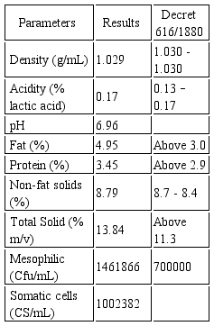 In 32.96% of the samples, the density was outside that established by Decree 616, but normal density values for raw milk have been reported in Sucre (20,21).