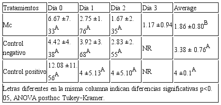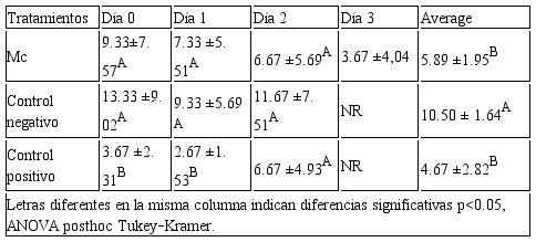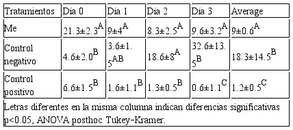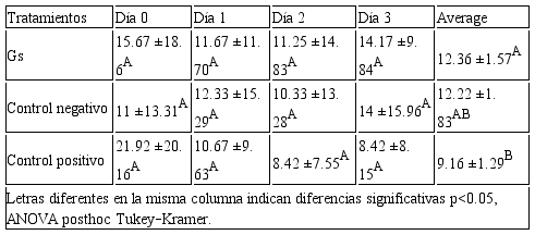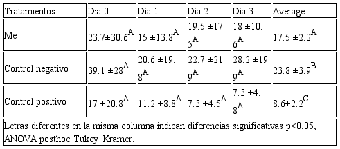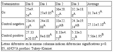 Pruebas in situ. Los resultados mostrados en promedios y desviación estándar de los conteos de teleoginas del lado derecho de los animales, se evidencian en las tablas 2, 3 y 4.